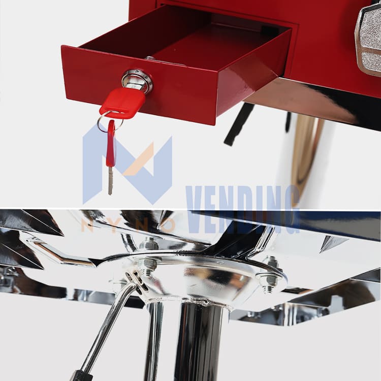 Included with a chromium base, this candy machine features a hydraulic mechanism for easy height adjustment via the handle. The adjustable height spans from 120 to 140 CM (approximately 47.24 to 55.12 inches)